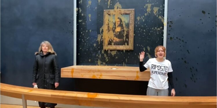 Në një video të publikuar në rrjetet sociale, dy gra të veshura me bluza ku shkruhej “Kundërpërgjigja ushqimore” u panë duke hedhur supë në xhamin që mbron kryeveprën e Leonardo da Vincit, dhe kaluan barrierat e sigurisë duke iu afruar pikturës.