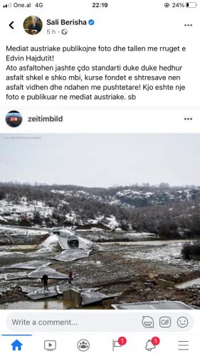 Në një nga postimet e tij ish-kryeministri Berisha ka ndarë foton e një rruge në Kosovë duke akuzuar qeverinë për standartin e ndërtimit të tyre. Komentiesit e kanë vënë re këtë gjë dhe e kanë “bombarduar” në komente, duke e nxjerrë bllof dhe duke i bërë me dije se rruga në të vërtetë ishte në Kosovë.