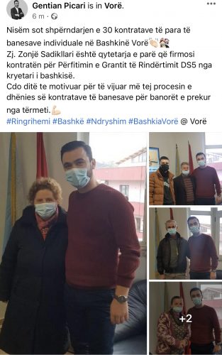 Pas kaq kohësh më në fund vjen lajmi që prisnin të gjithë përsa i përket rindërtimit në Vorë. Vetëm pak minuta më parë kryetari i bashkisë Gentian Picari bëri me dije se sot janë shpërndarë 30 kontratat e para për banesa individuale. Dita-ditës do të punohet më fort për të arritur objektivat e vëna.